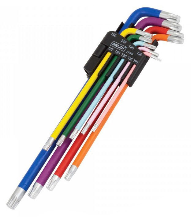 Welzh Werkzeug 2790-WW L-alakú, extra hosszú, színkódolt torxkulcs készlet, 9 részes